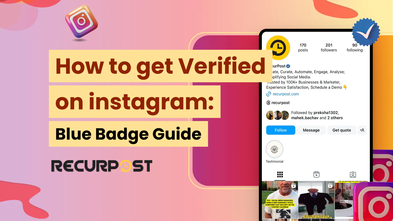 After thorough research and testing, we have come up with the best methods of getting Instagram verified in 2026. This guide from RecurPost: a social media scheduler that helps you schedule your Instagram posts and manage your profile. Here’s what you need to know about the verification process!
